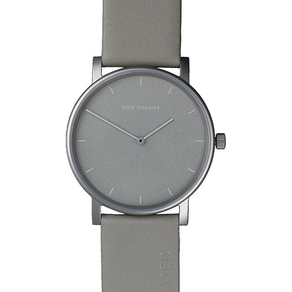 Dit Rolf Cremer Pur dameshorloge is gemaakt van mat staal en heeft een kastbreedte van 37 mm (zonder de kroon mee gemeten). Aan het horloge zit een horlogeband gemaakt van leer. Het horloge is voorzien van mineraal glas en wordt aangedreven door een quartz uurwerk.