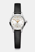 De Victorinox Alliance XS 241878 Dameshorloge 28mm valt op door zijn minimalistisch, doch stijlvolle uitstraling. De wit parelmoeren wijzerplaat met 11 Swarovski-kristallen en zilveren wijzers met Super-LumiNova lichtpuntjes zorgen voor een subtiele schittering. De gepolijste roestvrijstalen kast en de elegante soepel leren horlogeband geven het horloge een tijdloze uitstraling. Met een diameter van slechts 28 mm en een gewicht van ongeveer 43–67 gram ligt het horloge comfortabel om de pols.